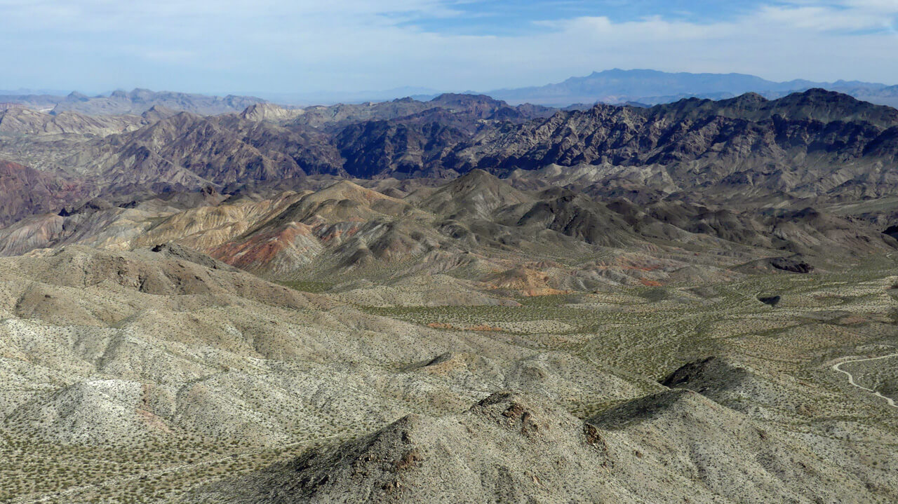 On the return flight, we changed seats to share window views with the other passengers. As we flew back over the desert, Michele pointed out various rock formations, told us tales of the area, and showed us some of the desert development.